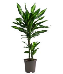 Wichtig ist, dass Sie den Drachenbaum ‘Cintho‘ vor direkter Sonneneinstrahlung schützen. Und gießen Sie die Zimmerpflanze immer erst wieder, wenn sich die oberste Erdschicht trocken anfühlt, denn zuviel Wasser kann zu Wurzelfäulnis führen. Von März bis Oktober ist die Zimmerpflanze dankbar für eine Düngergabe im zweiwöchigen Rhythmus, wir empfehlen dafür einen speziellen Grünpflanzen-Dünger. Drachenbäume brauchen auch eine hohe Luftfeuchtigkeit, weshalb Sie die Blätter regelmäßig mit kalkarmem Wasser besprühen sollten. Alle zwei Jahre zieht Dracaena fragrans gerne in ein größeres Gefäß um. Und sollte die Pflanze zu groß werden, kann sie auf jeder beliebigen Höhe eingekürzt werden.