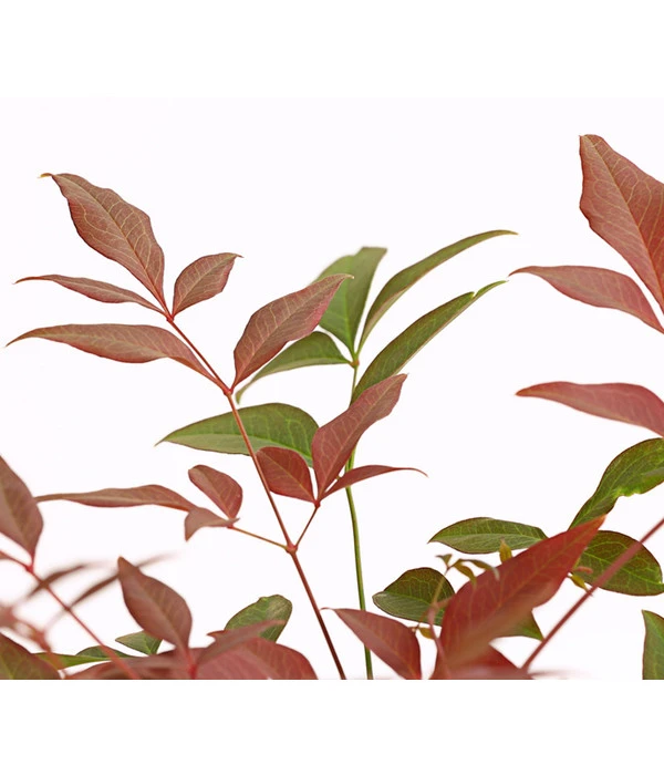 Viele Pflanzen zeigen sich das ganze Jahr über in einem gleichbleibend grünen Kleid. Das ist schön, aber auch wenig aufregend. Und es gibt Pflanzen, die überraschen uns immer wieder mit einem neuen Look. Wie der Heilige Bambus ‚Obsessed‘. Sie kennen diese Pflanze noch nicht? Dann haben Sie etwas verpasst und Ihr Garten musste bis jetzt eine einzigartige botanische Schönheit entbehren. Denn dieser Bambus begeistert mit einem spektakulären Farbspiel. Im Frühjahr zeigt sich ein leuchtend roter Austrieb, im Sommer zeigen sich die an eine Feder erinnernden Blätter in schönem Grün, im Herbst und Winter färben sie sich in leuchtende Rottöne. Doch nicht nur mit seinen Blättern sorgt der Heilige Bambus ‚Obsessed‘ für Abwechslung im Garten. Im Juni und Juli krönen weiße Blütenrispen die Zweige des locker wachsenden Strauchs. Sie verwandeln sich später in dekorativ rote Beeren, die oftmals bis in den Winter hängen bleiben.