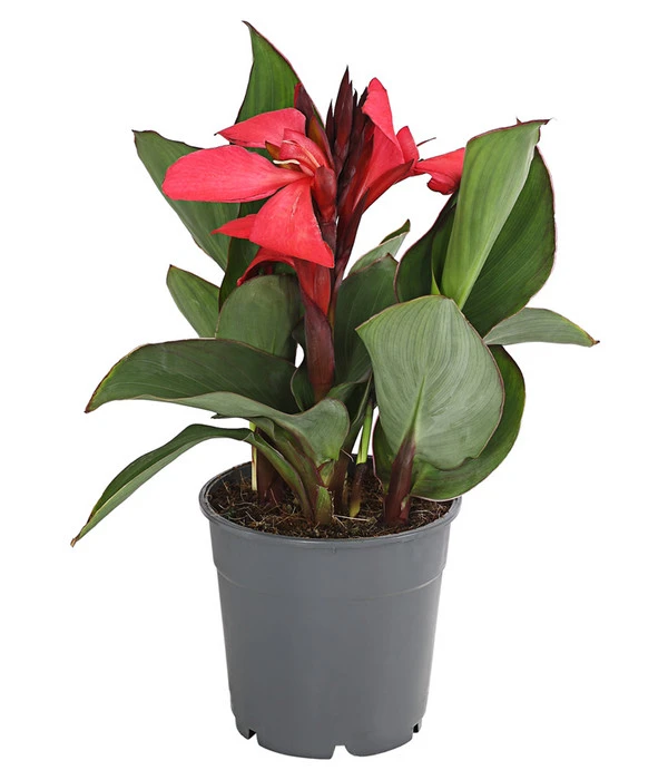 Obwohl die Canna, den deutschen Namen Indisches Blumenrohr trägt, stammt sie nicht aus Indien, sondern findet ihren Ursprung in Mittel- und Südamerika. Die attraktive Kübelpflanze, die mit ihren große, grünen Blättern auch einer Bananenpflanze ähnelt, besticht durch ihre auffälligen Blüten. Diese sitzen auf rohrähnlichen Trieben und leuchten entweder in Rot, Gelb oder auch in Orange, manche von ihnen zeigen sogar zweifarbig panaschierte oder gepunktete Blüten. Diese öffnen sich den ganzen Sommer über, sodass man lange Freude an den lilienähnlichen Blüten hat. Das Indische Blumenrohr kann eine Höhe bis zu zwei Metern erreichen und ist ideal als Kübelpflanze geeignet, da sie auch leicht zu überwintern ist. Nach dem Herbst muss es also nicht vorbei sein mit südländischem Flair auf Balkon oder Terrasse, auch im nächsten Jahr wird Sie die Canna mit ihren Blüten bereichern.
