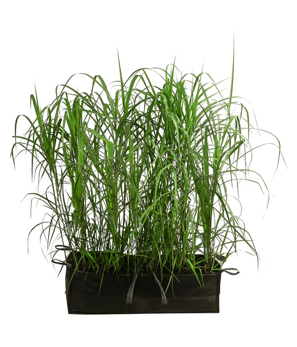 Sie erhalten das Riesen-Chinaschilf in einer Pflanztasche mit einer Breite von ca. 100 cm. Die Tasche ist außerdem mit zwei stabilen Tragegriffen ausgestattet, mit deren Hilfe Sie das Ziergras bequem zu zweit tragen und einfach und schnell umstellen oder in einen passenden Pflanzkasten setzen können.