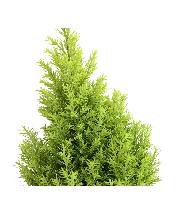 Schön dichter Wuchs, ausgezeichnete Hitze- wie auch Kältetoleranz sowie gute Schnittverträglichkeit – kein Wunder, dass Scheinzypressen für die Anlage von Hausgärten so beliebt sind. Die Scheinzypresse ‚Ellwood’s Gold‘ präsentiert sich außerdem im Schmuck weicher gelbgrüner Nadeln, zumindest, wenn sie an einem sehr sonnigen Plätzchen stehen darf. Im Schatten zeigt das Nadelgehölz eher ein sattes Grün. Dank ihres aufrechten, kegelförmigen Wuchses heißt sie in Gärtnerkreisen auch Kegelzypresse. Die Scheinzypresse ‚Ellwood’s Gold‘ hat eine Wuchsgeschwindigkeit von 10 – 20 cm pro Jahr und wächst somit deutlich langsamer als die Sorte ‚Ellwoodii‘. So wird es viele, viele Jahre dauern, bis das immergrüne Nadelgehölz seine maximale Wuchshöhe von 200 – 350 cm erreicht hat. Außerdem können Sie das Größenwachstum gut im Griff behalten, denn Scheinzypressen lassen sich gut schneiden.