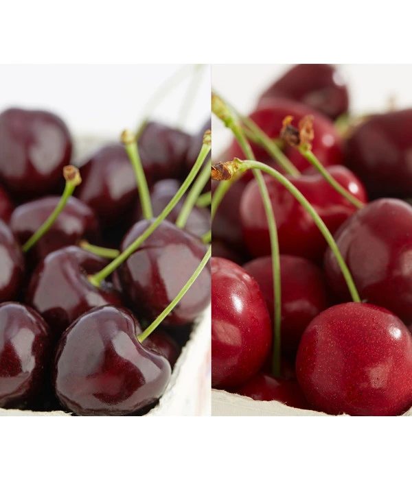 Früher gab es kaum einen Garten ohne Obstbäume. Und neben Äpfeln und Birnen sind gerade süße Kirschen besonders beliebt bei alle Obst-Naschmäulern. Angesichts immer kleinerer Gärten findet sich aber kaum ausreichend Platz für mehrere Bäume. Obstbaumzüchter haben dieses Problem erkannt und hier ist die Lösung: das Süßkirschen-Duo ‘Kordia/Burlat‘. Hier wurden zwei der besten Kirschensorten auf einem Baum kombiniert, was den Kirschen-Genuss mehr als verdoppelt. Die Sorte ‘Burlat‘ ist eine sehr frühe und reich tragende Kirschsorte mit großen, dunkelroten und festen Früchten. ‘Kordia‘ ist eine mittelspäte bis späte Süßkirsche mit festen, dunkelroten Früchten, die zudem eine gute Platzfestigkeit aufweisen. Durch die Kombination dieser beiden Sorten in dem Süßkirschen-Duo ‘Kordia/Burlat‘ von Dehner haben Sie mit etwas Glück ein Erntezeitfenster von sage und schreibe Ende Mai bis weit in den Juli hinein.